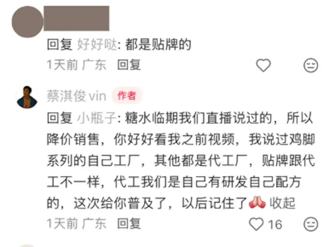 他还纠正了网民对所谓代工贴牌的偏见,强调他们团队是有专门研发人员和专属配方的。他直言这次就当是普及知识。这番有理有据的回复,也展现了他的担当。